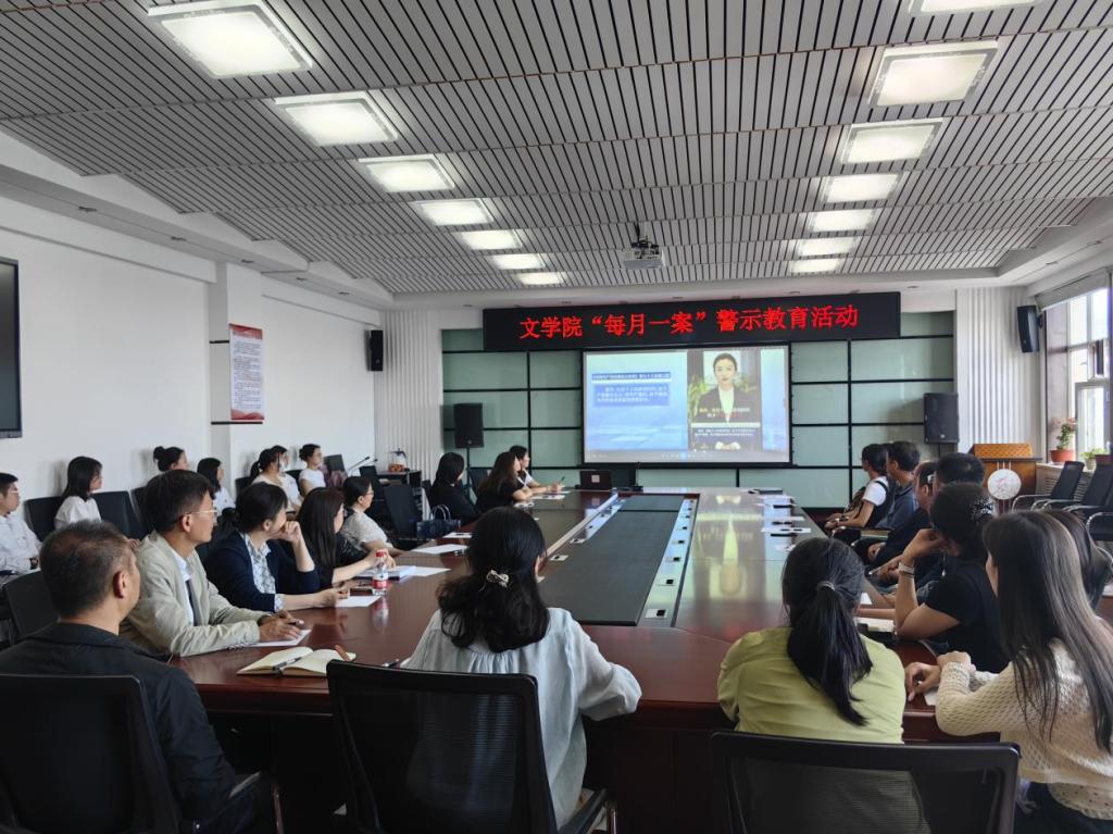 为深入学习贯彻习近平总书记关于党纪学习教育的重要讲话和重要指示精神,扎实开展党纪学习教育系列工作,6月12日下午,文学院党委组织教工师生汇文楼750开展党纪学习教育专题宣讲和“每月一案”警示教育活动,活动由党委书记孙艳华主持。