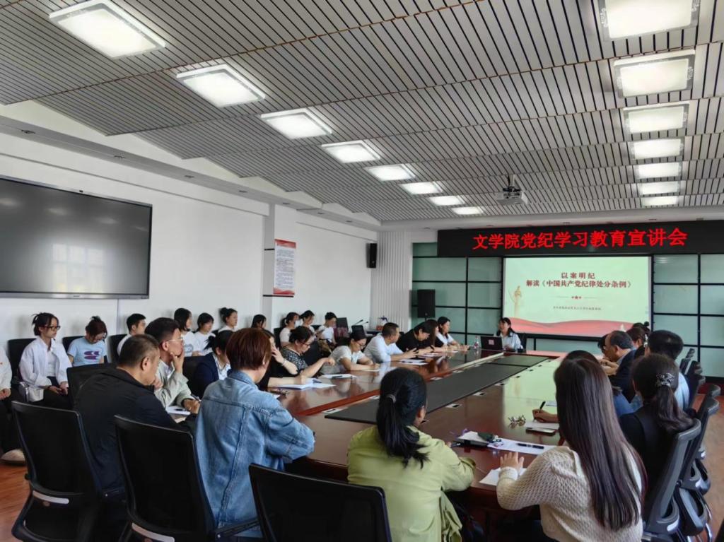 文学院党委全体党员必将以铁的纪律筑牢政治忠诚、激发奋斗激情,把党纪学习教育同完成具体工作目标结合起来,切实把在党纪学习教育中焕发出来的工作热情和奋斗精神转化为推动学院、学校工作高质量发展的磅礴力量。(文学院供稿)