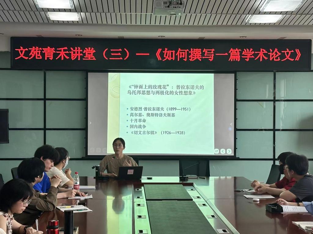 为进一步加强学院学科建设,营造良好学习氛围,夯实专业基础,开阔学术视野为营造良好的学术氛围,文学院于2024年6月19日在汇文楼750会议室开展文苑青禾讲堂第三讲。