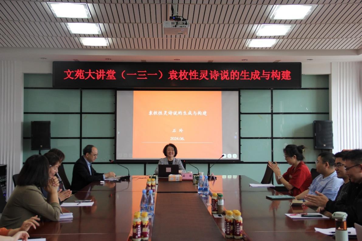 2024年6月24日上午,“文苑大讲堂”第一三一期在黑龙江大学汇文楼750室举办。本次讲座题为“袁枚性灵诗说的生成与构建”,山东师范大学文学院石玲教授担任主讲嘉宾,文学院李亦辉教授主持,杜桂萍教授应邀出席,黑龙江大学文学院及省内外十余所高校的40余位师生代表参加。