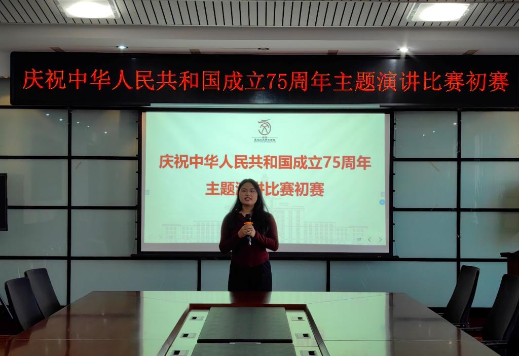七十五载长歌奋进,赓续前行再奏华章。为庆祝中华人民共和国成立七十五周年,讴歌中华人民共和国成立后取得的巨大成就,教育引导青年学生厚植家国情怀,涵养进取品格,立报国强国大志向,做挺膺担当奋斗者,10月18日下午,文学院于汇文楼750会议室举办了庆祝中华人民共和国成立75周年主题演讲比赛初赛。在这场激动人心的演讲比赛中,比赛选手为我们展现了新中国的辉煌成就和新时代的青春力量。