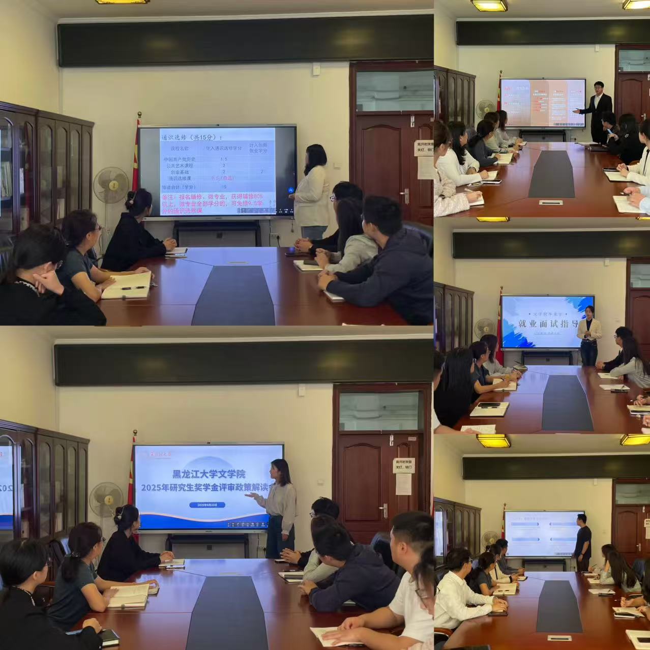 系列培训与研讨内容充实、针对性强,各领域负责人结合分管工作进行了深入分享与交流。邹昊楠同志主讲《新时代基层党建实务与规范化建设探索》,聚焦党建工作的标准化、规范化流程,分享了提升基层党组织组织力的有效经验和务实举措。杨鑫焱同志以《文学院新媒体矩阵构建与品牌影响力提升策略》为题,系统阐述了新媒体环境下学院宣传工作的创新路径与实践方法,内容涵盖新闻策划、平台运维、舆情引导等维度,为讲好学院故事、传递文院声音提供了新思路。沈晨曦同志以《国家通用语言文字推广与民族团结进步教育的实践融合》为题,精彩回顾了暑期“三下乡”社会实践活动的丰硕成果,探讨了将育人工作与服务社会相结合的有效模式。孙浩博同志带来《“一站式”学生社区综合管理模式创新与实践》 的分享,介绍了如何将育人力量下沉到学生社区,打造宜居、宜学、宜成长的良好生态。徐悦同志聚焦《高校心理健康教育工作的精准化与前瞻性应对》,分析了当前学生心理健康工作的重点与难点,强调了预防干预和人文关怀的重要性。姚迪同志以《高校毕业生就业指导与服务效能优化策略》为题,分享了在简历优化、求职技巧、市场对接等方面提升就业指导精准度与实效性的经验思考。谭天歌同志主讲《新时期高校学风建设的内涵深化与长效机制构建》,探讨了营造勤学、善思、笃行浓厚学习氛围的有效途径。