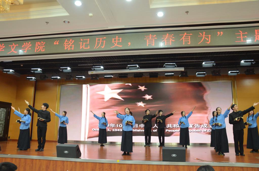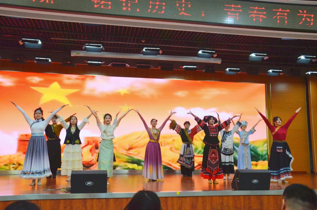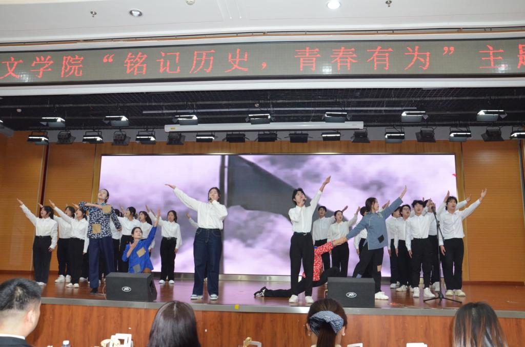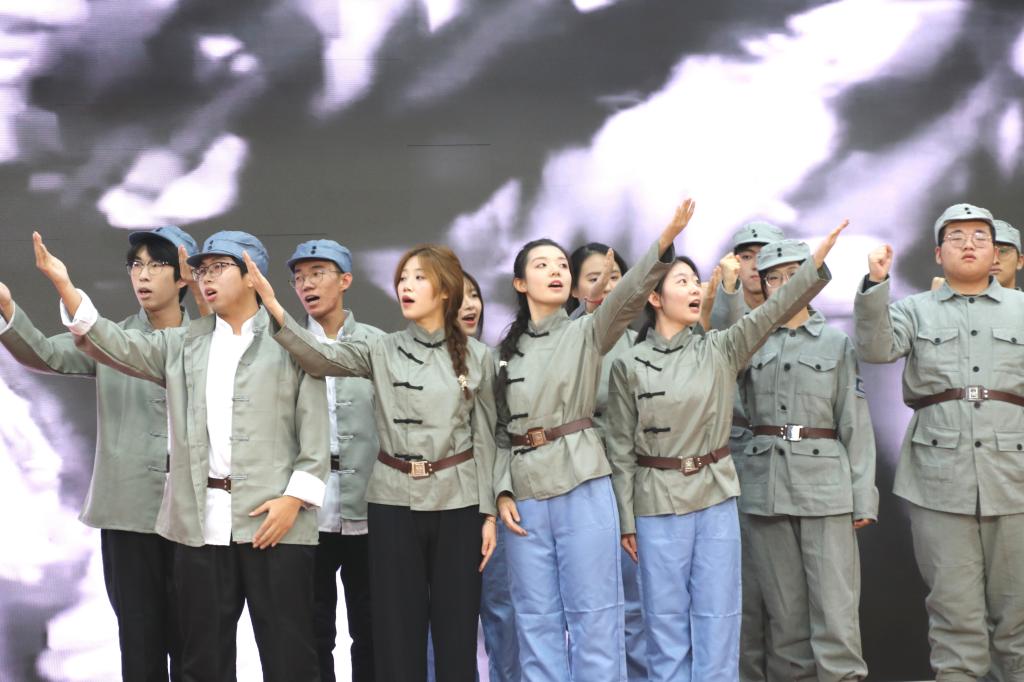第三篇章“挺膺担当·青春有为”中,情景剧“担当·新时代丰碑”《黄文秀日记》以“扶贫日记”为线索,生动演绎了黄文秀用青春和生命谱写时代之歌的故事。手语操表演“告白·无声的宣言”《我爱你中国》中,团员青年们用手势舞出对祖国纯粹而又深沉的爱。“使命·托举未来”《以青春之名赴时代之约》集中展现了文学院学子奔赴祖国各地,为中国式现代化挺膺担当的青春风貌。从东北林海到沂蒙山区,从黄土高坡到赣南红土,“怒吼·黄河绝唱”《山歌串烧+保卫黄河》让我们共同感受到当年全民族誓死抗争的钢铁意志。