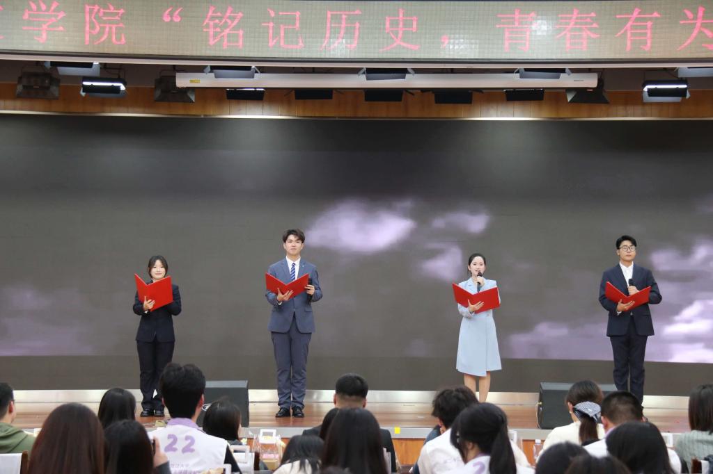 百年薪火永赓续,青春有为正当时。为引导广大青年勇担时代使命,传承红色基因,文学院团委积极响应校团委号召,于11月25日晚在主楼一楼报告厅举办“铭记历史,青春有为”主题团日活动。文学院党委书记孙艳华,党委副书记许迪,团委书记邹昊楠,团委副书记徐悦、沈晨曦、杨鑫焱、孙浩博、谭天歌,研究生秘书王艺霖,校理研会代表、学院各学生组织负责人以及学院2025级本科生、研究生共同参加本次活动。