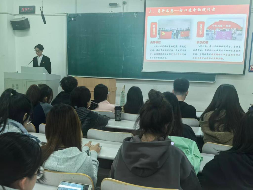 知识讲座部分,团委书记邹昊楠围绕发展党员工作流程、思想汇报撰写规范、党的创新理论及党章基础知识等内容展开系统讲解,清晰阐释党员的权利与义务,帮助学员准确把握入党各环节要求,为早日加入党组织打下坚实基础。