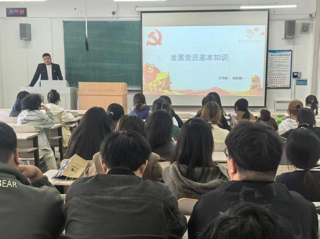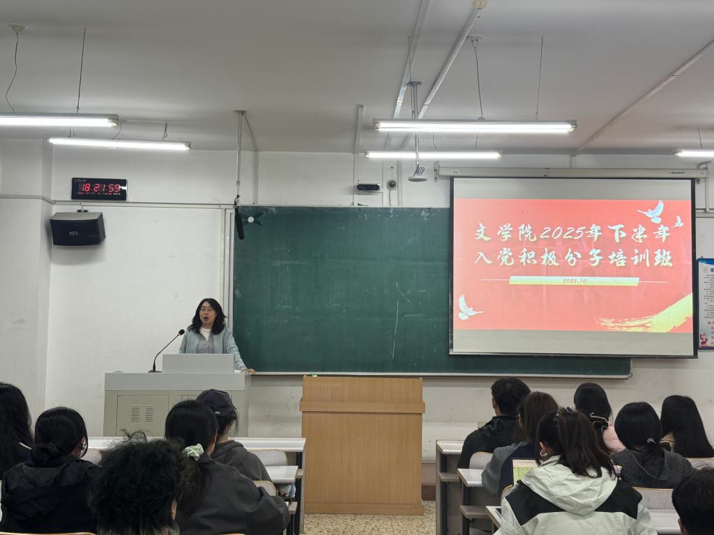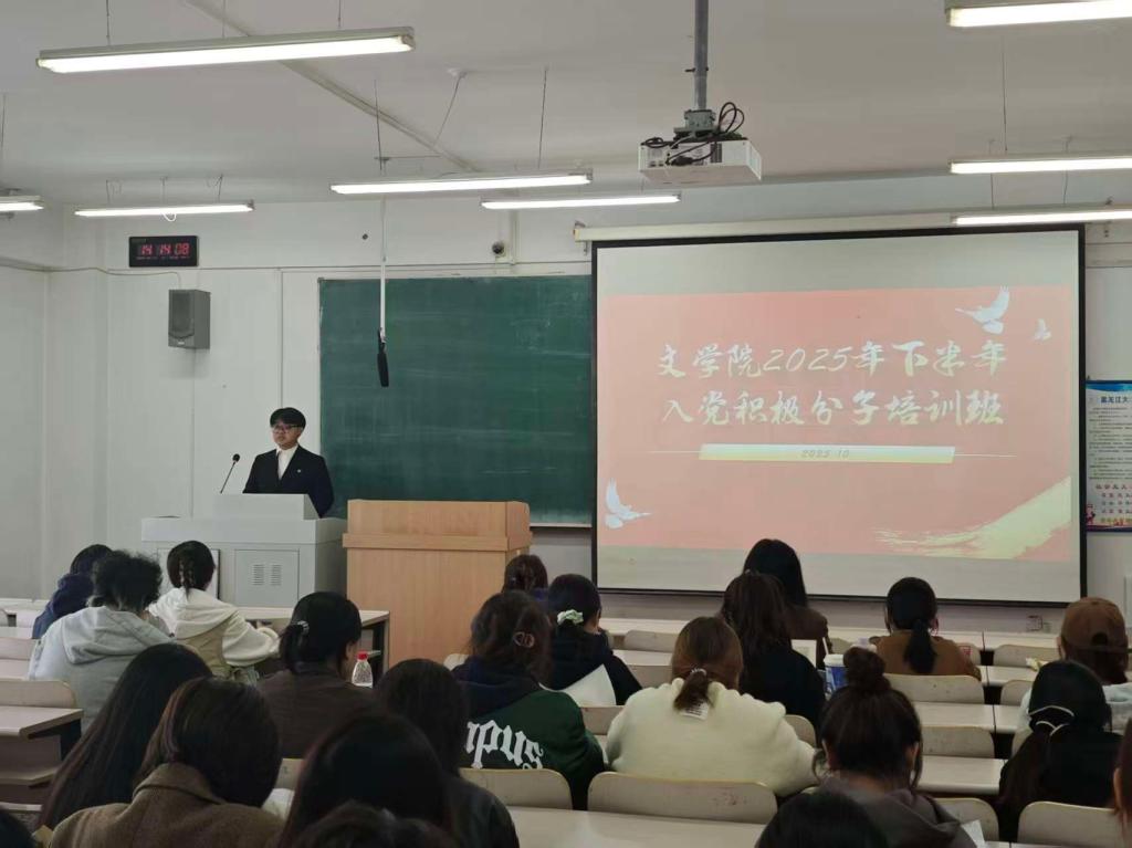 为切实提高入党积极分子的政治觉悟和理论素养,根据《关于推进2025年下半年发展党员工作重点任务的通知》统一部署,文学院于2025年10月10日至11日成功举办2025年下半年入党积极分子培训班。培训内容涵盖集中授课、知识讲座、视听学习、实践体验、典型教学、交流研讨等六大模块。文学院党委书记孙艳华、团委书记邹昊楠、辅导员谭天歌分别担任主讲,全体入党积极分子参加培训。