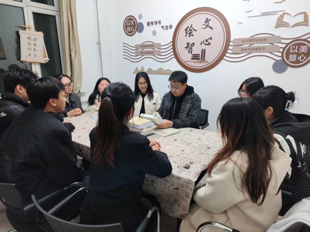 为深入学习贯彻习近平新时代中国特色社会主义思想,全面落实党的二十大精神,进一步提升学生党员的理论素养和党性修养,文学院于2025年10月15日在子衿园5栋学生公寓楼一站式学生社区,组织开展《习近平谈治国理政》第五卷专题读书会。本次活动由文学院辅导员孙浩博主讲,文学院第46期学生预备党员培训班全体成员参加。