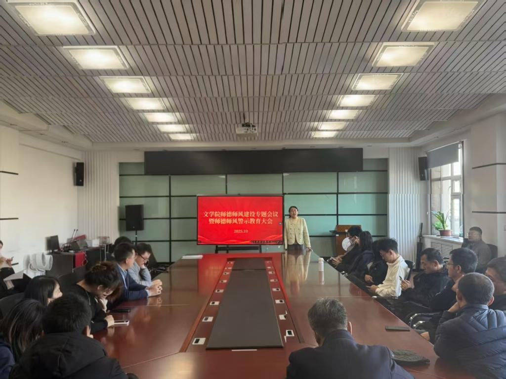 为深入贯彻落实学校党委关于加强教师思想政治与师德师风建设工作部署,规范教师履职履责行为,切实筑牢教职工思想道德和行为规范防线,10月15日,文学院组织召开师德师风专题学习暨警示教育大会。会议由学院党委书记孙艳华主持,学院全体教师参加。