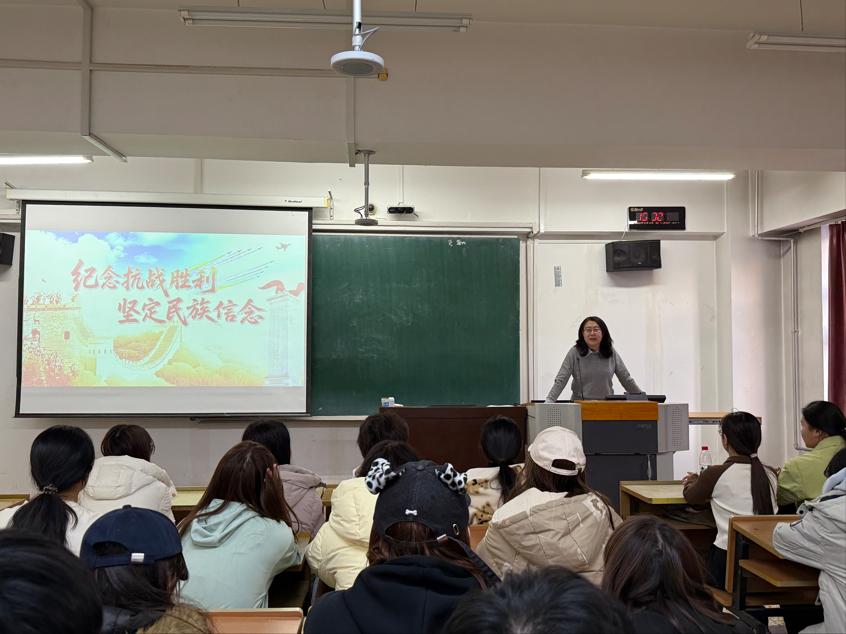 11月11日,文学院党委书记孙艳华以《纪念抗战胜利,坚定民族信念》为题,结合抗战胜利80周年时代背景,从“历史为何必须铭记、精神为何永不褪色、青年为何要勇担使命”切入,通过“回望烽火岁月,感悟正义必胜的历史必然”“传承抗战精神,汲取砥砺前行的不竭动力”“立足时代征程,践行强国有我的青春誓言”三个方面的阐释,强调新时代青年应对风险挑战的核心底气在于坚定的理想信念、深厚的家国情怀和顽强的奋斗意志,鼓励同学们一要扎根历史土壤,二要胸怀复兴大局,在铭记先烈遗志中坚定前进方向、在投身强国实践中彰显青年担当。