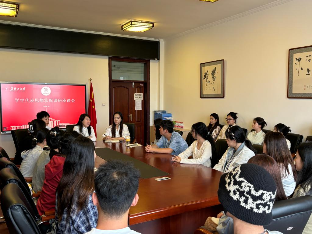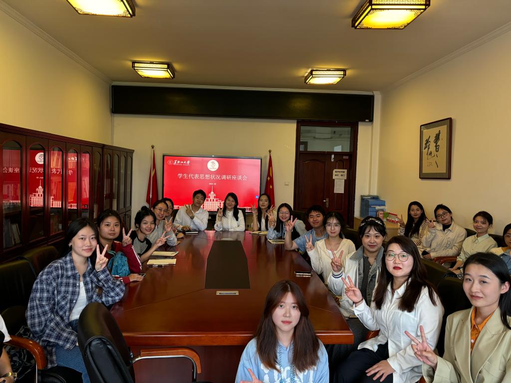 会议伊始,杨鑫焱老师表明本次座谈会的目的和意义, 强调了学院对学生发展的关注,并表示希望通过这次座谈会,能够听取到学生们的意见和建议,进一步改善学习、生活环境和为生活提供更好的支持。